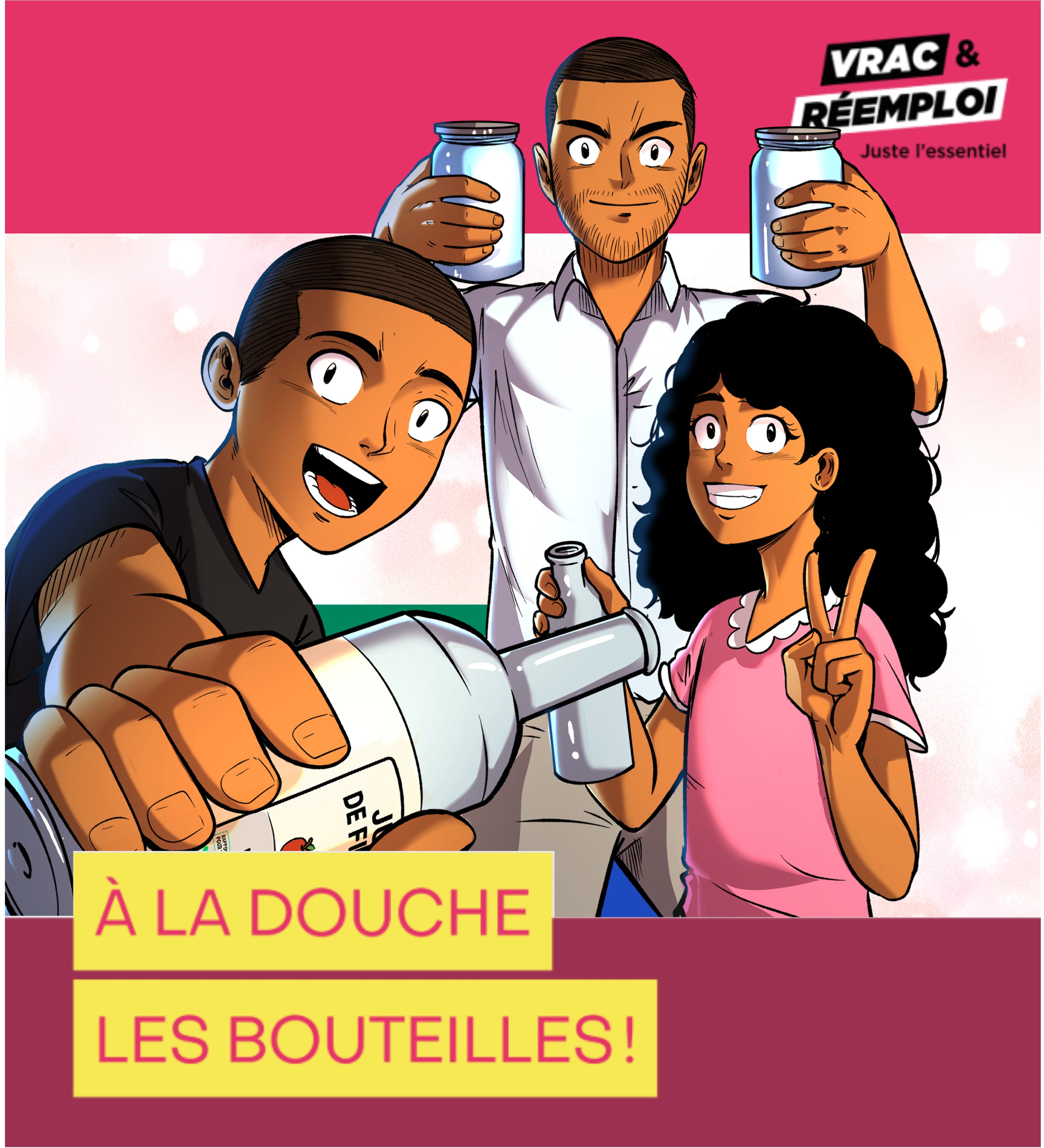Dans ces trois BD pleines d’humour, des jeunes comme les autres relèvent le défi du vrac et du réemploi.